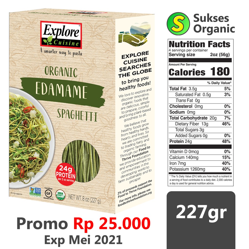 Organic Edamame Spaghetti Gluten Free Pasta 227gr Explore Cuisine Shopee Indonesia