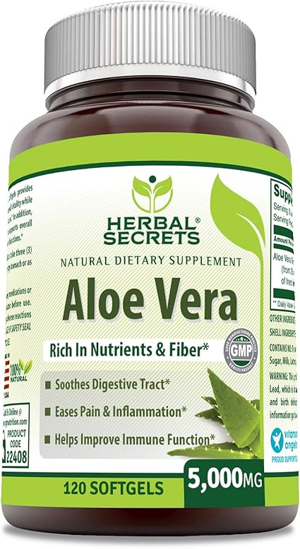 Amazon Com Herbal Secrets Aloe Vera Natural Dietary Supplements 120 Softgels 5000 Mg Health Personal Care