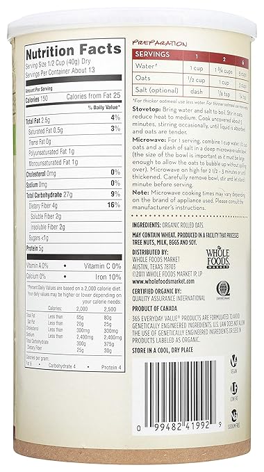 Whole Foods Rolled Oats Nutrition Facts Nutritionwalls
