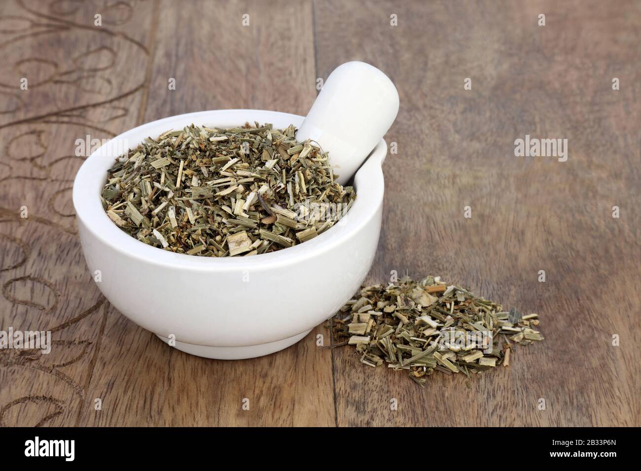 Melilot Herb Leaf Sweet Clover In A Mortar With Pestle Used In Herbal Medicine To Treat Odemas Bruises Sprains Is Used As An Anti Inflammatory Stock Photo Alamy