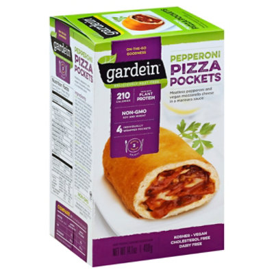 375 per 14-ounce box 4-pack Availability. Made with vegan mozzarella in a zesty marinara sauce with plenty of delicious Gardein pepperoni to satisfy your hunger theyre made with non-GMO soy and wheat and are ready in just 3 minutes to give you plenty of convenience. Gardein Pizza Pockets Pepperoni.