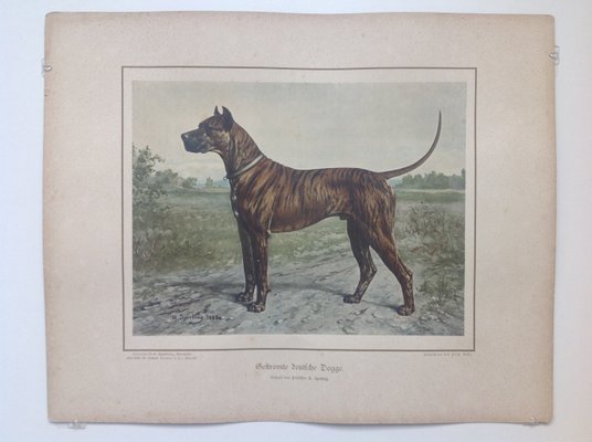 H Sperling For Wilhelm Greve Brindle Great Dane Dog Antique Chromolithograph Of A Purebred Dog For Sale At Pamono