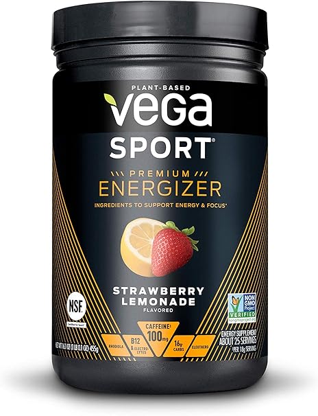 Amazon Com Vega Sport Premium Energizer Strawberry Lemonade Pre Workout Energy Drink Certified Vegan Vegetarian Gluten Free Dairy Free Soy Free Non Gmo Natural Pre Workout Powder 25 Servings 16 1 Oz Health